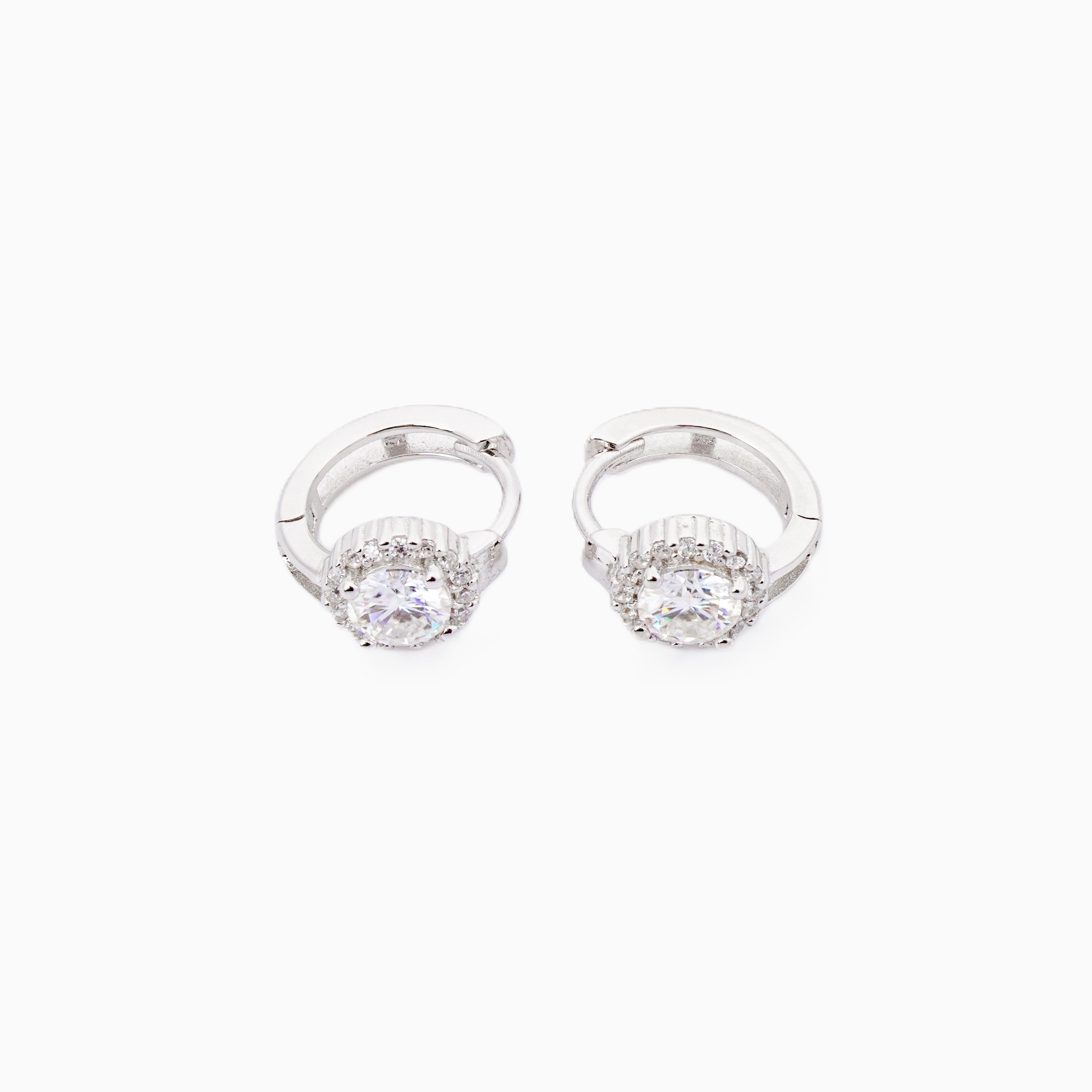 • Round Cut Moissanite with Round Moissanite Halo Huggie Earrings